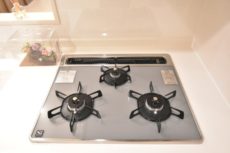 コンロは3口、温度設定やタイマー機能などのある高機能タイプ。消し忘れなども防げそうで、是非我家にも欲しいところです(^^)