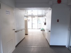 エントランス。オートロックではありませんが、住込の管理人さんがいるので何かと安心です。防犯カメラも設置されています。