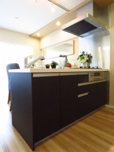 スペースをとらずにお部屋を広く使えるのが特徴です。短所として「キッチン内が丸見えになってしまう」というものがありますが、いつも綺麗にしておけば何の問題もありません。みんなの憧れ食器洗浄乾燥機付き!!!食後はのんびり過ごせますね♬