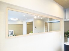 ダイニングスペース側の壁面には横長の鏡が設置されていました。