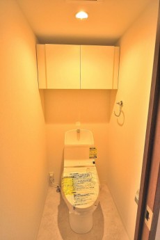 トイレは大きく広いスペースで、上部に吊り棚が設置されていますので、トイレ内はいつも清潔にキレイにお使い頂けます。