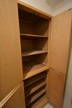 踏み台がないと届かない位置なので、普段使わない調理器具や、来客用の食器などの収納にお使い頂けます。