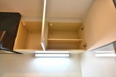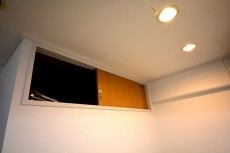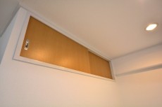 キッチンスペースの南側、天井に近い位置にも収納スペースがあります。