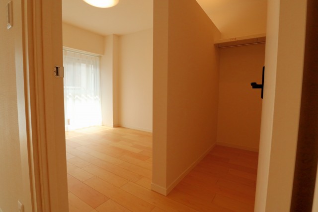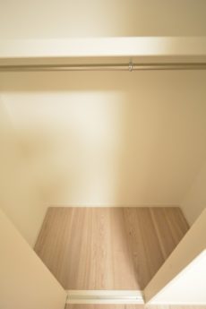収納はクローゼット。間口は狭いですが左側は壁まで奥行きがあるので、意外に収納力もありそうです。