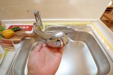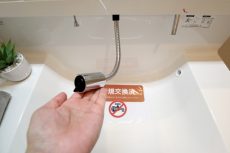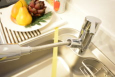 水栓は浄水機能付きシャワー水栓。気軽に美味しいお水を使う事が出来ます。
