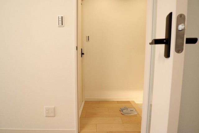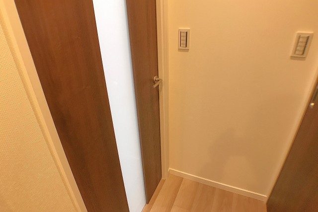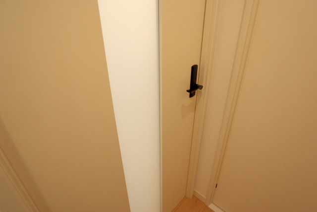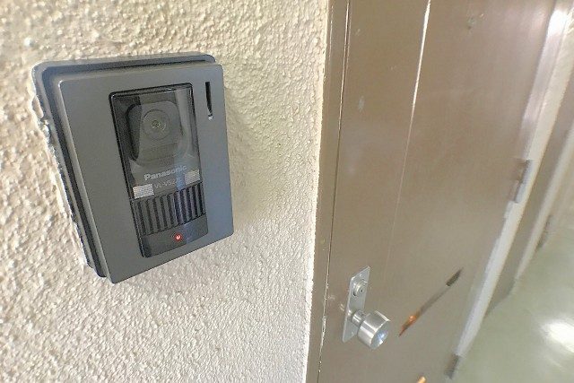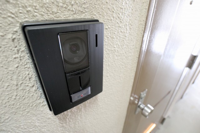 玄関ドア横にはテレビモニター付きインターホンが設置されていて、お部屋の中から訪問者をチェックする事が出来ます。返事をする前に確認すればしつこいセールスに悩まされる事もなくなりますね。