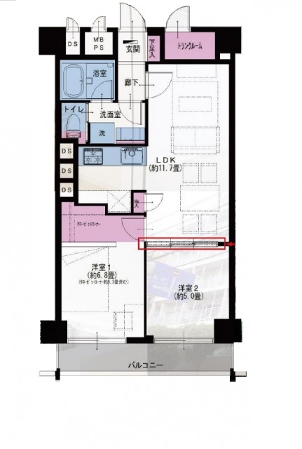 こちらのお部屋と5.4帖のお隣のお部屋のバルコニーは繋がっています!