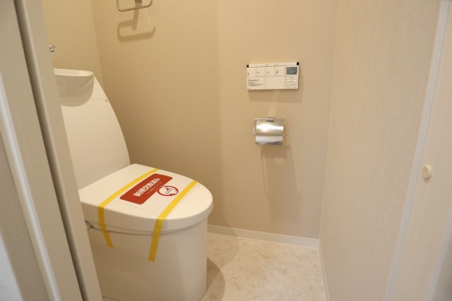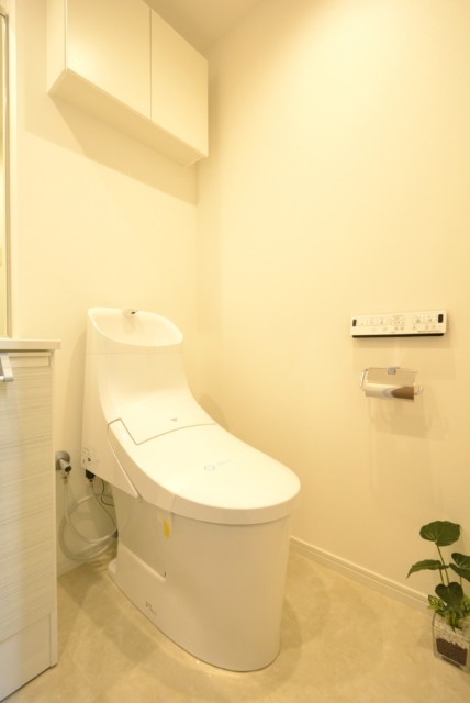 吊戸棚、温水洗浄便座付き。温水洗浄便座はINAX製のシャワートイレです。