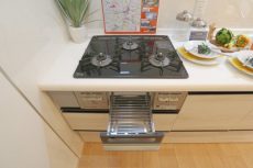 3口コンロに片面焼きグリルと調理器具も充実!日本ではよく見かけるグリルですが海外では珍しいようで、これが欲しいという方意外に多いらしいですよ。