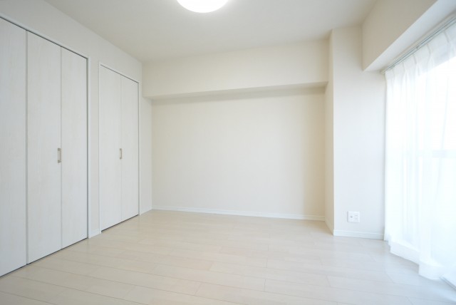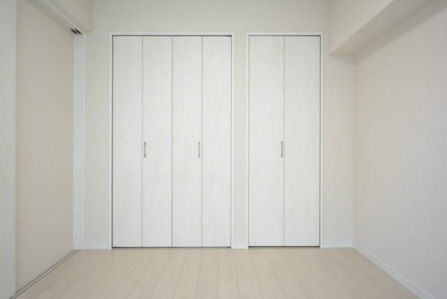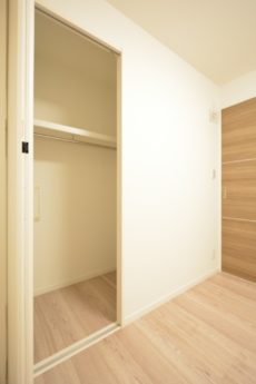 このお部屋の収納も、間口の割に幅があるクローゼットです。ベッドを置くと家具はあまりたくさん置けませんので、この収納力は助かりますね。