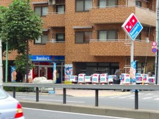 マンションは前の環七です。道路の反対側にはドミノピザがあるので頼めばすぐ