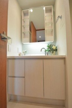 鏡の裏にも小物が収納できるので洗面まわりをスッキリ保つことができそうです。