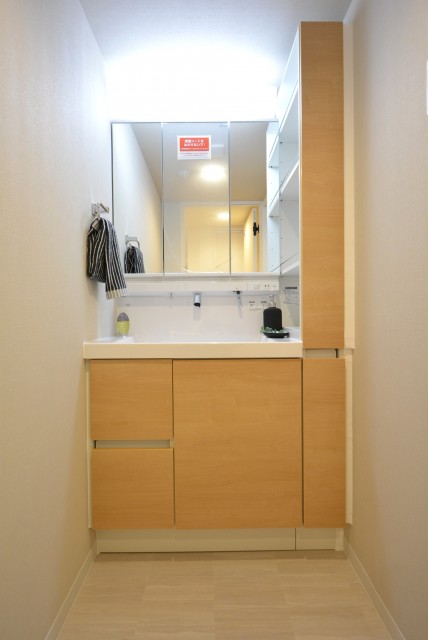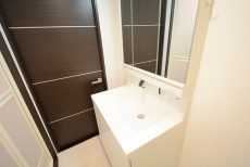 優しい木目の色あいが落ち着きのあるサニタリースペース。