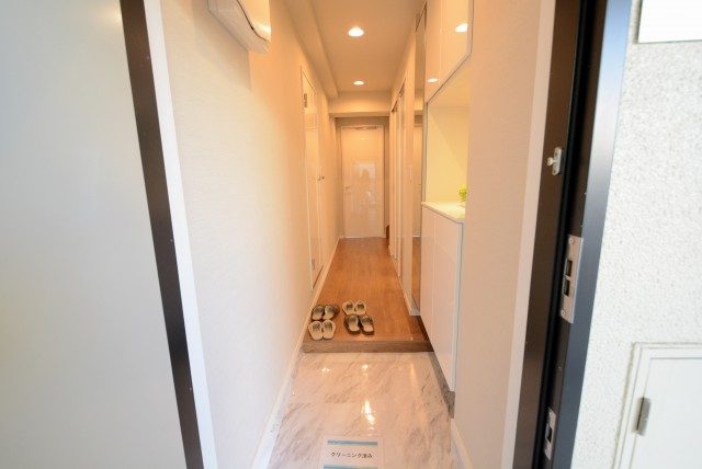 玄関をあがると正面に廊下が伸びており、その先にダイニングキッチンの扉があります。