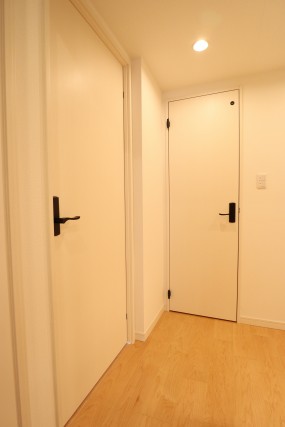 ダイニングキッチンから洋室2部屋へ。洋室の扉の間の柱にはエコカラットタイルがついています。エコカラットは見た目もオシャレですが、調湿・消臭効果などがあり機能面でも優れています。