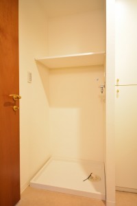 洗濯機置場の上には洗剤を置いておける棚もつくられています。