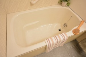 追い焚き機能と浴室換気乾燥機付き。雨の日でも洗濯物が乾かせて便利です。