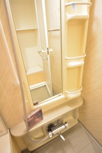 右手には洗面まわりの物を入れておけるキャビネットもあるのでゴチャゴチャ