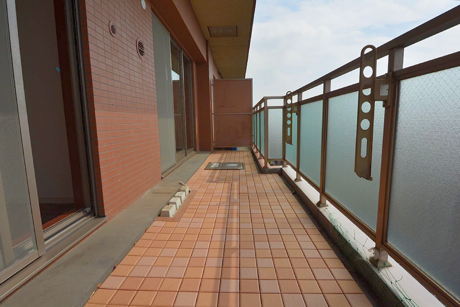 オレンジ色のタイル敷きで&広々しています。