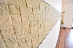 玄関の正面には廊下に施されたエコカラットがバーンと目に入ってきます。