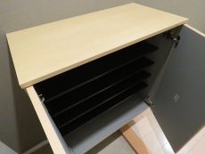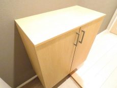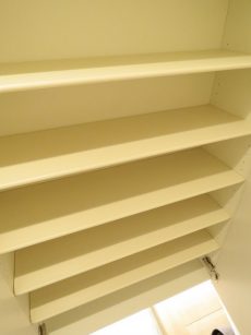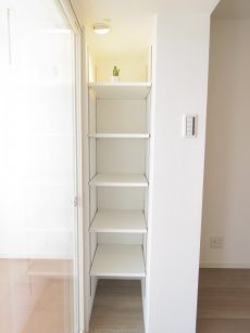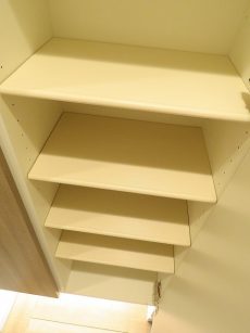 その奥には収納棚があります。お出掛けに必要な物がこの棚にしまっておきましょ☆