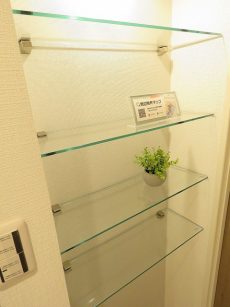 シューズBOXのお隣はこんなガラス棚がつくられています。