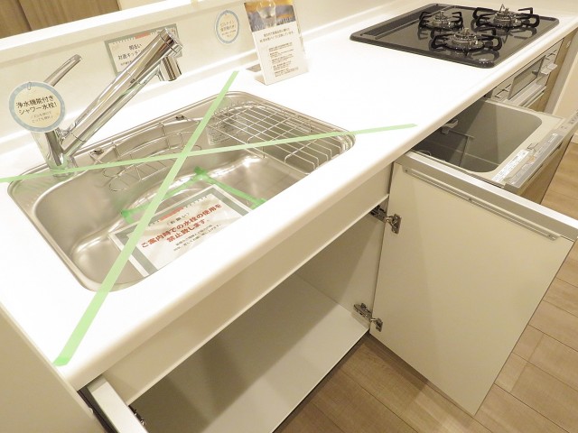 キッチンには浄水器付水栓、3口コンロの他に、お片付けの強い味方食洗機が付いていました♪