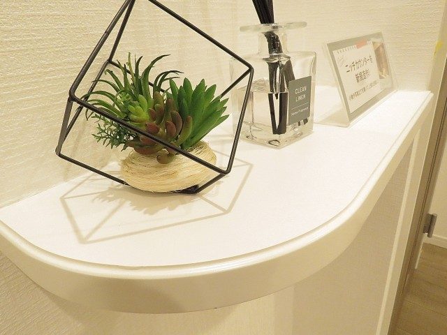 玄関にはカウンターが設置され、キーやコインを置いたり、観葉植物や写真、小物などを置いてインテリアを楽しむことが出来ます。「玄関は家の顔」綺麗に飾ってあげたいですよね。