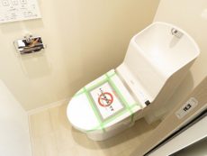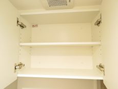 ウォシュレット付トイレの上部にも吊り棚があって、ストックや掃除道具を収納しておけます!