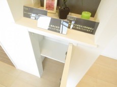玄関扉をあけると正面にはトールサイズのシューズBOXが設置されています。小さなカウンターもあるのでお好みのインテリアを飾ることもできます。