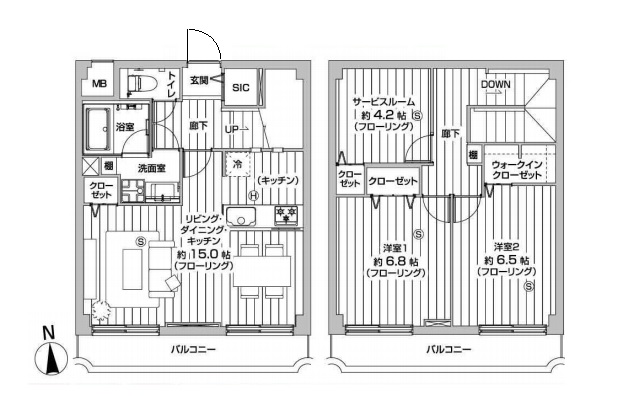 それでは間取りのご紹介です。2LDK+S+WIC、84.00㎡。7・8階のメゾネットタイプ(´∀`*)