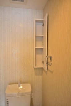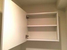 上部に棚も付いていますので、トイレットペーパーや洗剤の置場にも困りません。