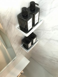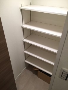バスルームの出入り口横にはリネンの収納に便利な可動式の棚が設置されています。