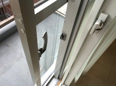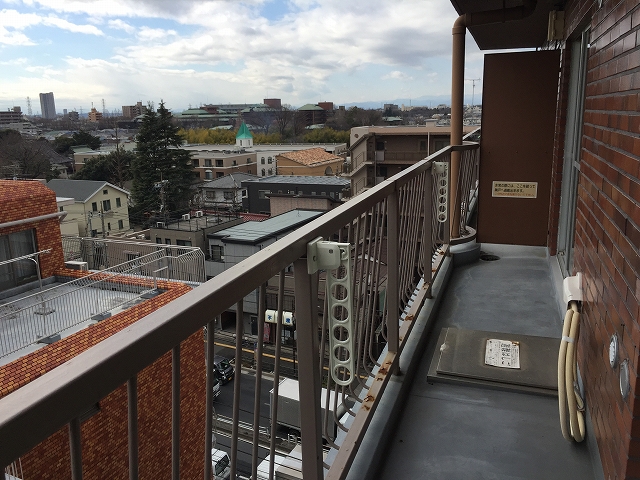 バルコニーには前のマンションから見えない様にすりガラスの目隠しがされています。そのため、遠くまで見渡せる範囲が少し狭いですが、風通しは良く、とても気持ちのいいバルコニーでした。