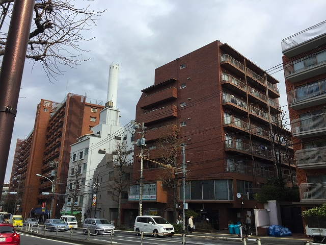 昭和53年築、地上8階建て、総世帯数31戸の環八通り沿いに建つブラウンのタイル貼り外観のマンション☆