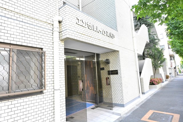 エントランスは環八通りに面しています。エントランスから入り、エレベーターを上がってお部屋に行くことも、エントランス右側の外階段を上って行くこともできます(^^)/