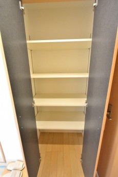 玄関左側にはシューズインクローゼットがあります。約2.5帖の室内には棚がたくさん♪