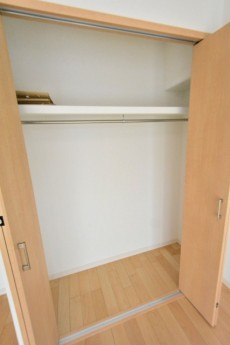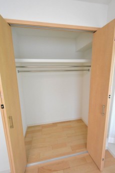 北側にはクローゼットがあります。とても奥行きがあるクローゼットで、ハンガーパイプが前後に2本あるので、春夏物・秋冬物をシーズンごとに前後入れ替えが出来て収納しやすいクローゼットです。