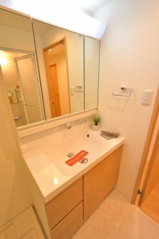 洗面台はシンクの両側がカウンターになっているので、歯ブラシ、タオル、コンタクトレンズ等々いっぺんに置けて、お出かけ準備がラクラクです♪