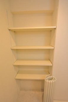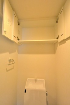 上部に吊り棚が設置されているので、トイレットペーパー等を床に置かずに清潔にお使い頂けます(^o^)