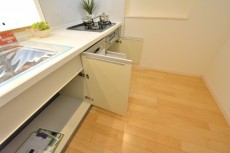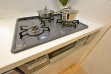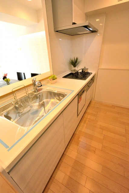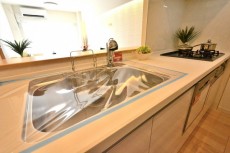 ワークトップとシンクが広く、お料理がしやすいキッチンです。シンクには浄水器つき水栓、コンロは3口なので、更にお料理がはかどりますね♪