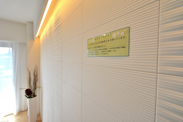 リビングダイニングキッチンの北側の壁は全面エコカラットになっています。