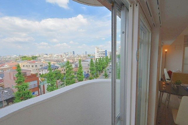 バルコニーからの青い空と白い雲、遠くまで見渡せる杉並の閑静な街並み・・・ぜひ1度現地をご覧くださいませ。