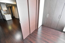 モニター付きインターホンが設置されていて、お部屋の中から訪問者を確認することができます。お料理中など手が離せない時に玄関まで来る必要がないのは有難いですよね。玄関脇にはトランクルームが付いているので、室内に持ち込むのはチョットというものや普段使わないものなどを入れておけます。