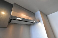 収納は、調理台下のスライドキャビネットと上部に吊戸棚が付いています。スライドキャビネットは開口部が大きいので出し入れがしやすく、ぎっしり詰めても中の確認がしやすい優れもの。逆に吊戸棚にはあまり使わないものを入れておきましょう。