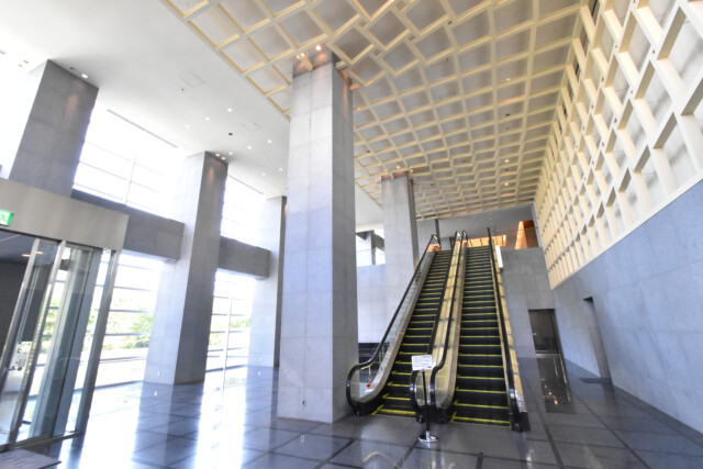 オートロックを抜けると、2階までの吹き抜けになったエントランスホールになっています。エスカレーターが設置されまるでホテルのようですね。