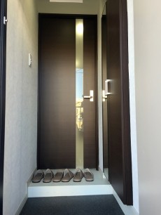玄関の右側にはトールサイズのシューズボックスがあります。可動式の棚でブーツの収納もOK♪♪扉には大きな姿見があるのでお出かけ前のチェックもバッチリです♪