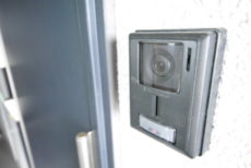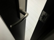 玄関に到着です。ドア横にはテレビモニター付きインターホンが設置されて、お部屋の中から訪問者を確認する事が出来ます。手が離せない時に、玄関まで来なくてもいいのがいいですよね。