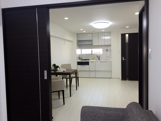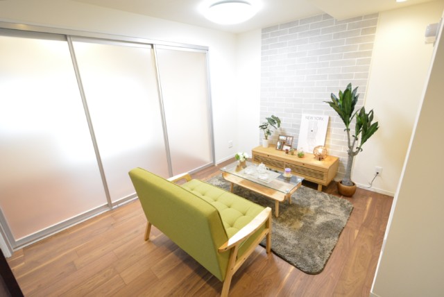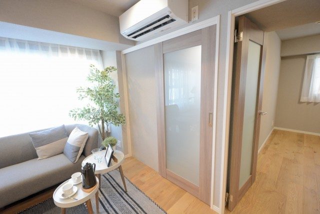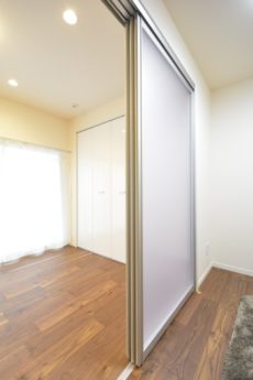 扉を閉めた時のLDK。仕切りの扉は、閉めても窓からの光が届くように半透明になっています。透明じゃないのでプライバシーが必要になっても大丈夫♪♪