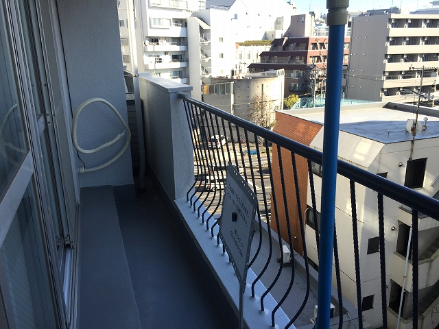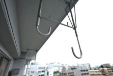 物干し金具が付いています。南向きでお洗濯物も気持ち良く乾きそうですね。床には段差がありますのでお気を付け下さい。